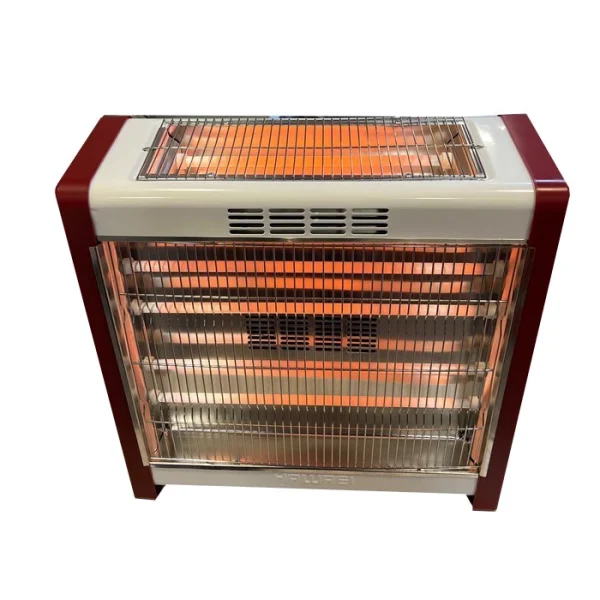 این محصول دارای 6 المنت اروپایی و کم مصرف می باشد که چهار المنت در پایین و 2 المنت در بالا می باشد که میتوان روی آن قابلمه و چیزی برای گرم نگه داشتن گذاشت این محصول دارای سنسور وازونی نیز می باشد که در مواقع افتادن با عث قطع کامل جریان برق می شود کلید ها طوری طراحی شده است که به هر صورت می توان استفاده کرد هم به صورت تک و بدون فن در هر مدل و در اخر دارای مصرف انرزی A می باشد که کم مصرف ترین نوع بخاری برقی می باشد.