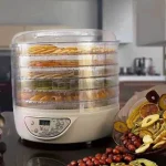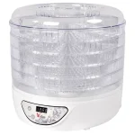 سایر ویژگیها: میوه خشک کن دیجیتالی دمای قابل تنظیم از ۳۵ تا ۷۰ درجه سانتی گراد دارای نمایشگر LED زمان قابل تنظیم تا ۱۹/۵ ساعت دارای ۵ طبقه قابل تنظیم ارتفاع ارتفاع هر طبقه ۳۱ سانتی متر